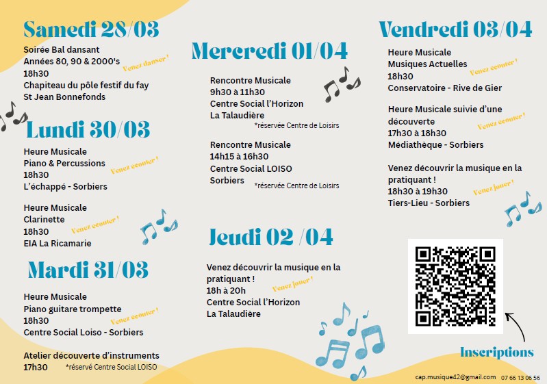 🎶 L’association CAP Musique anime sa semaine musicale hors les murs et passe par le Centre social LOISO à 2 reprises :