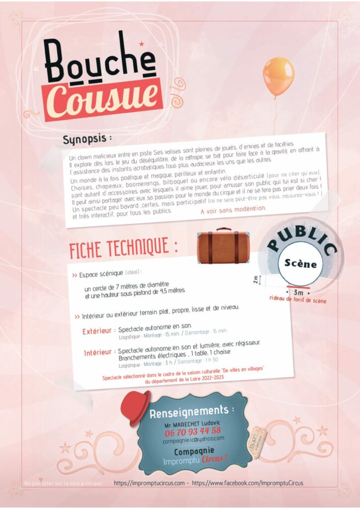 A 15h : Spectacle Bouche cousue de la Compagnie « Impromptu Circus » – Distillateur de bonne humeur