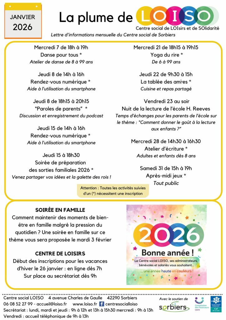Le Centre social est fermé. Nous vous retrouvons le lundi 5 janvier à 9h.